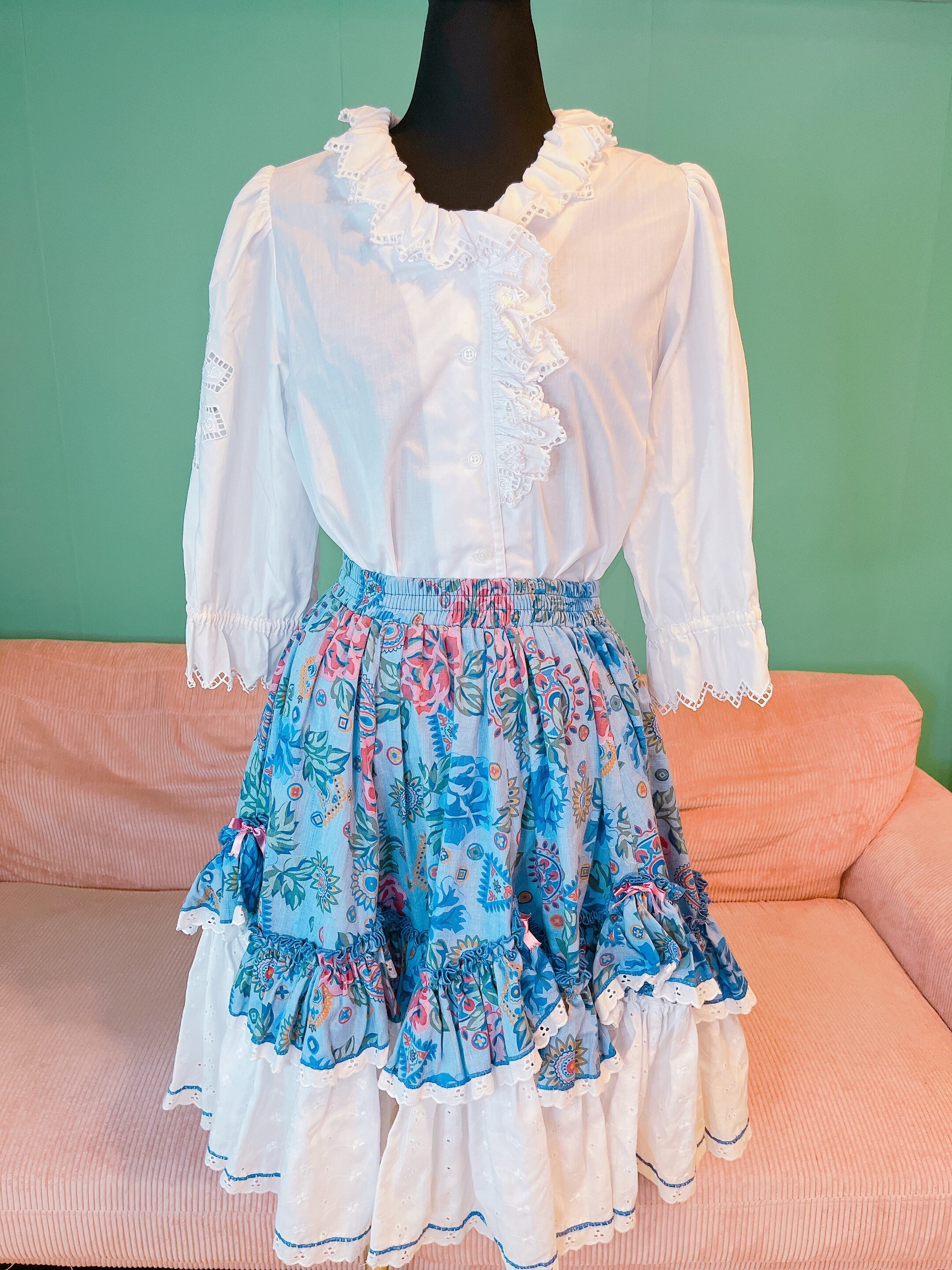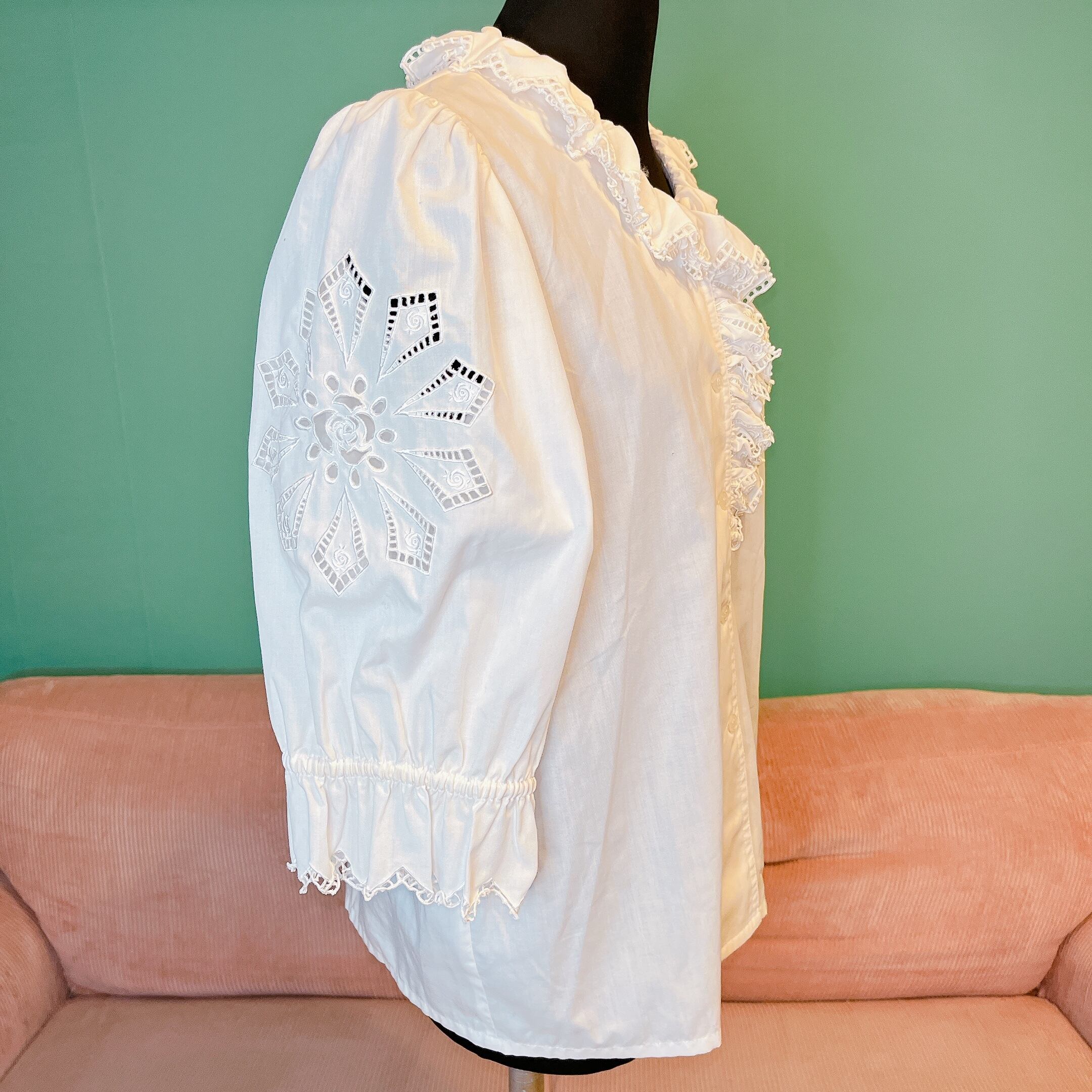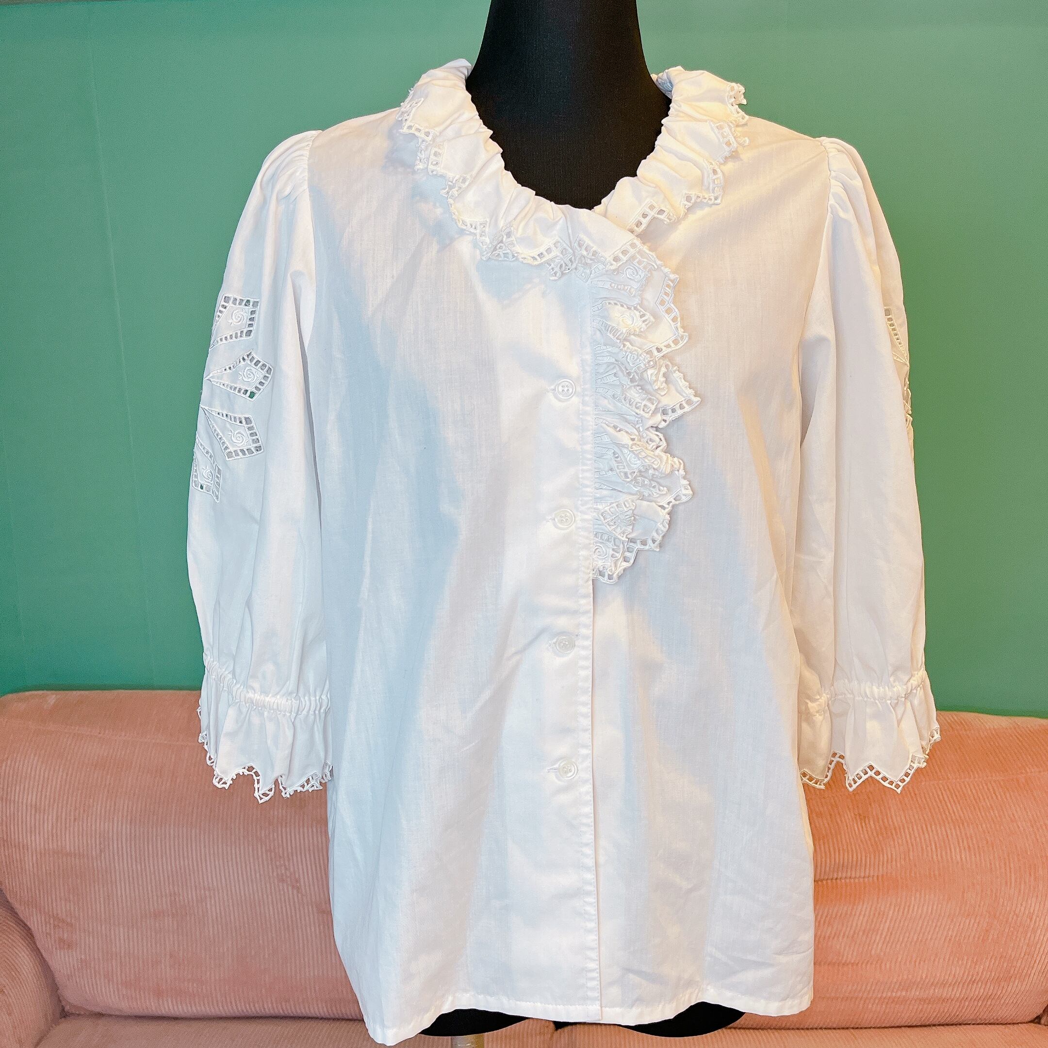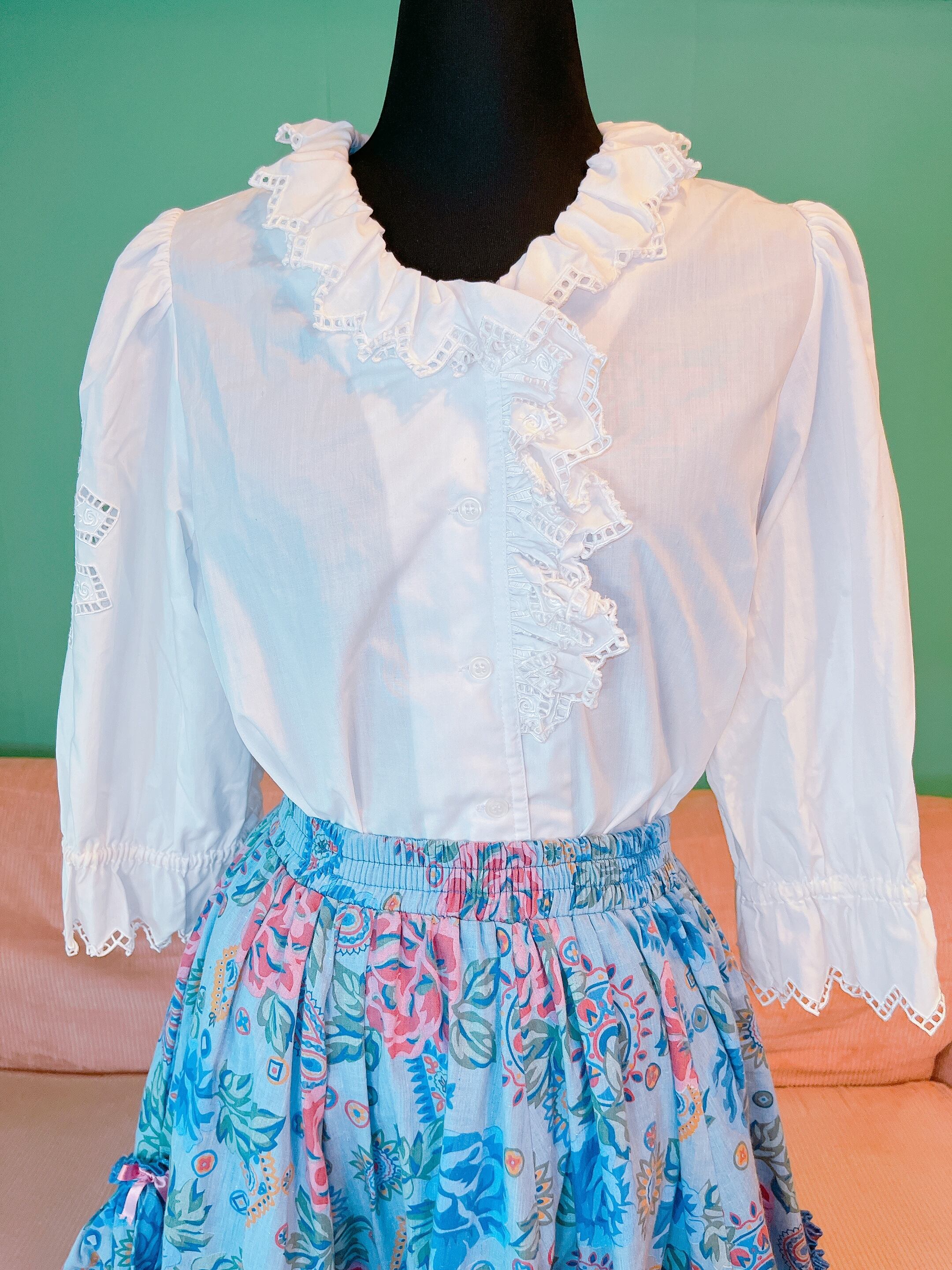 white frill blouse