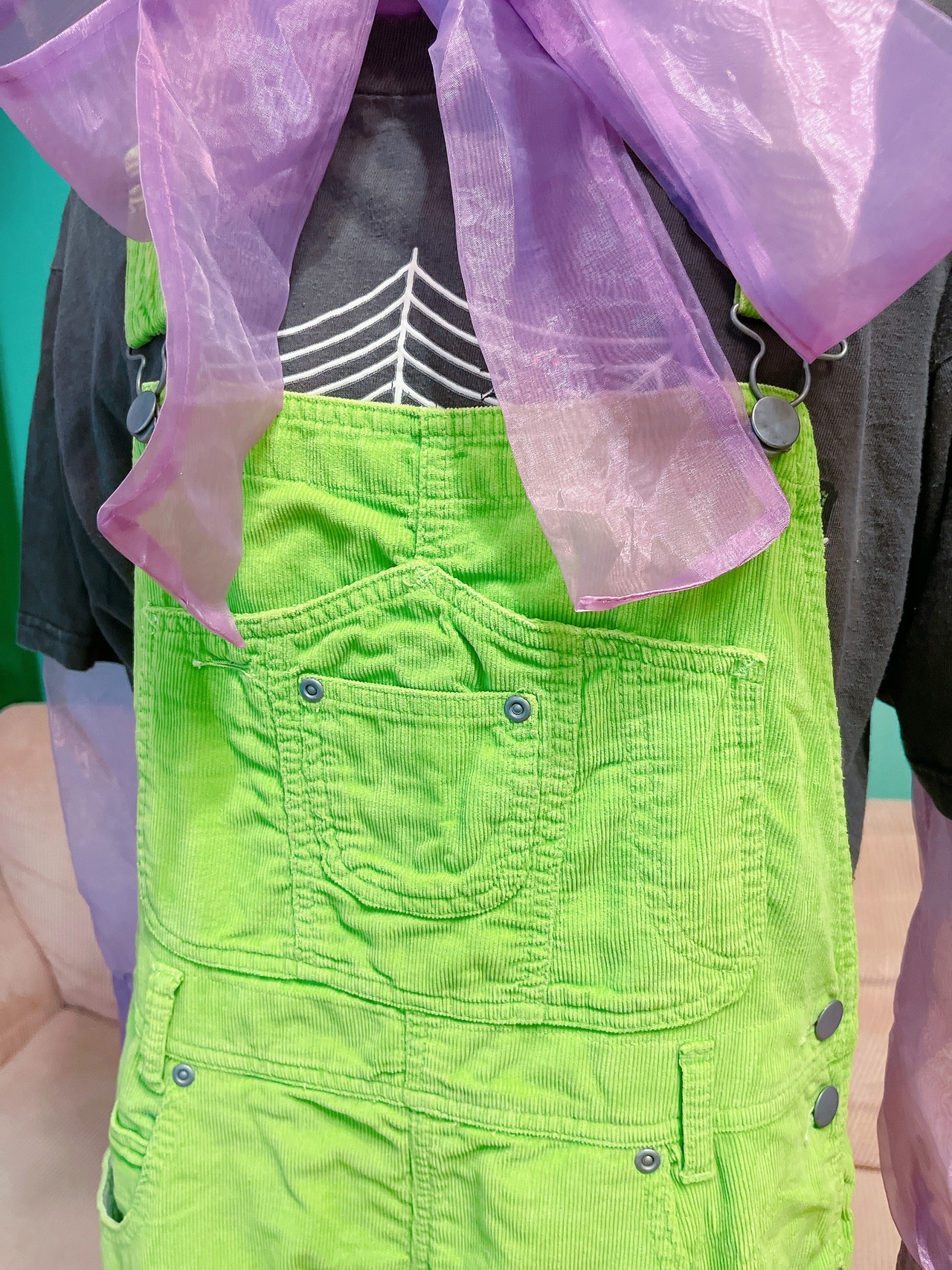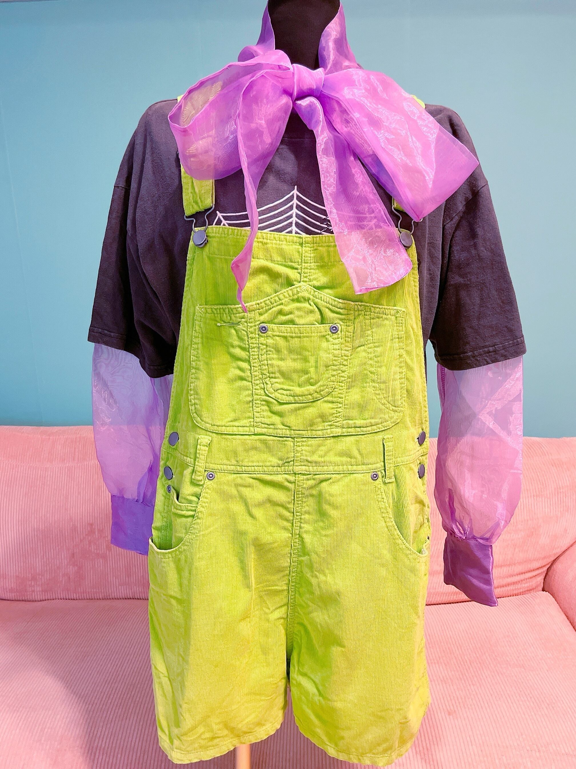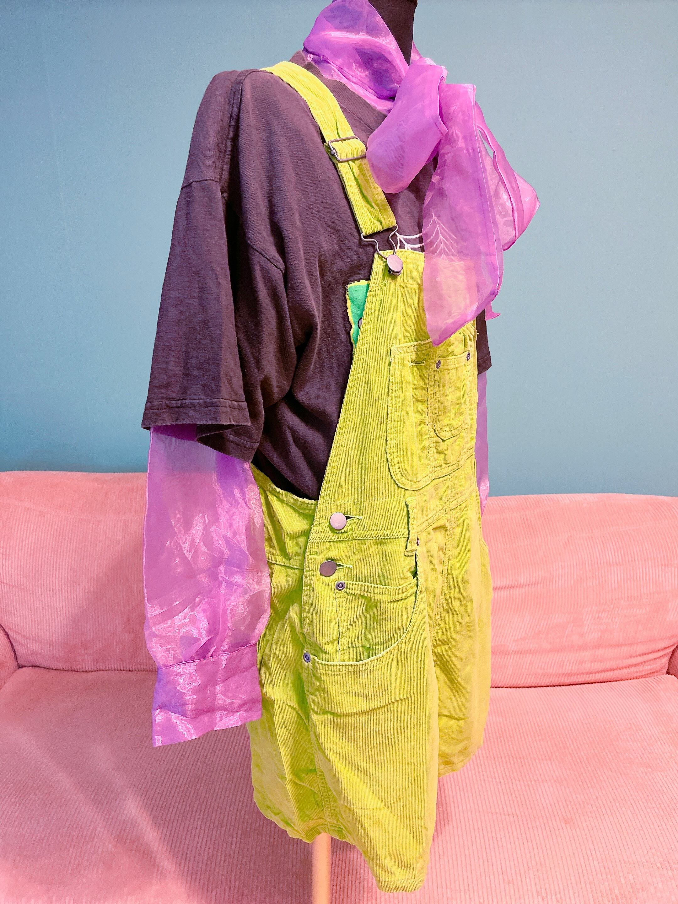 lime green corduroy salopette
