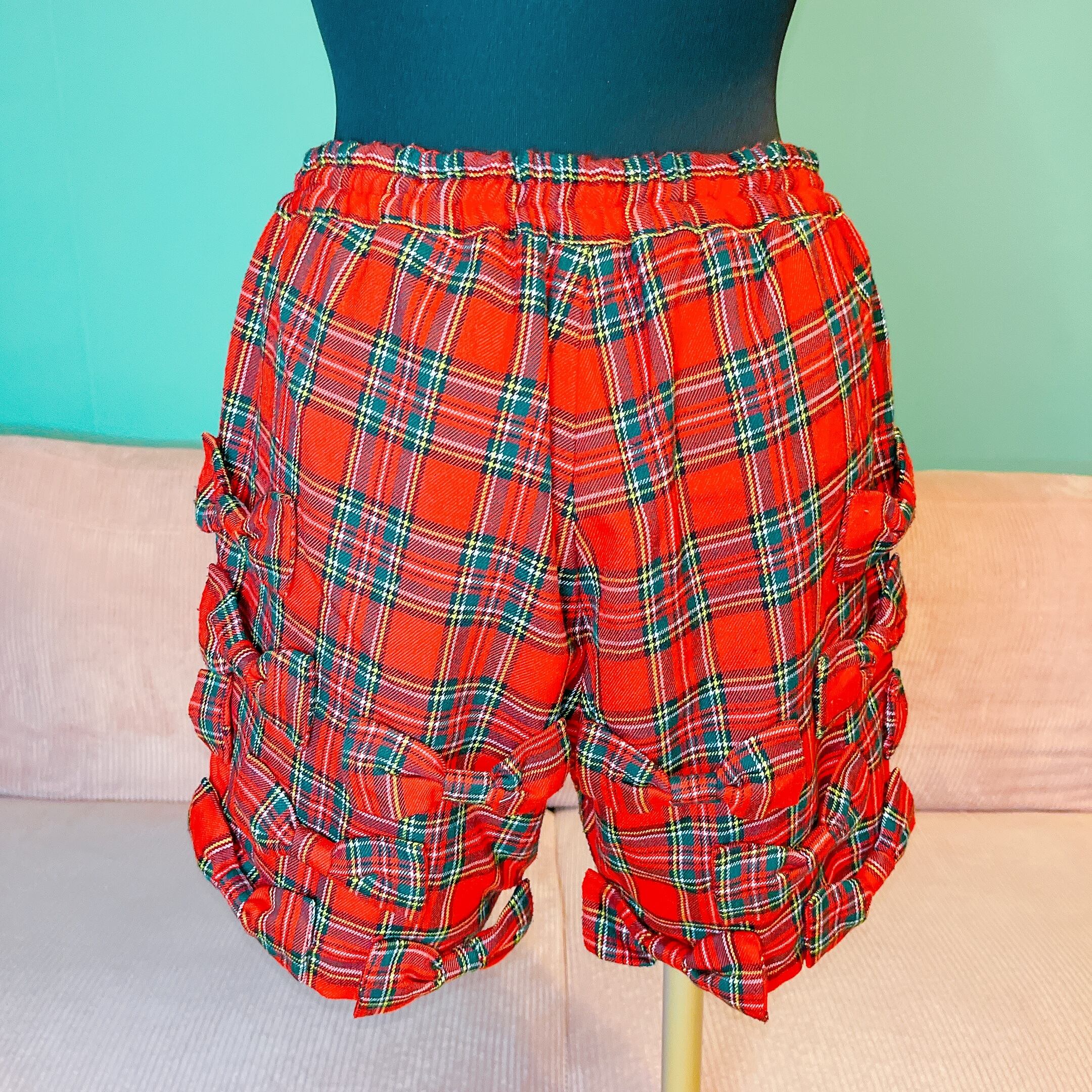 check ribbon half pants